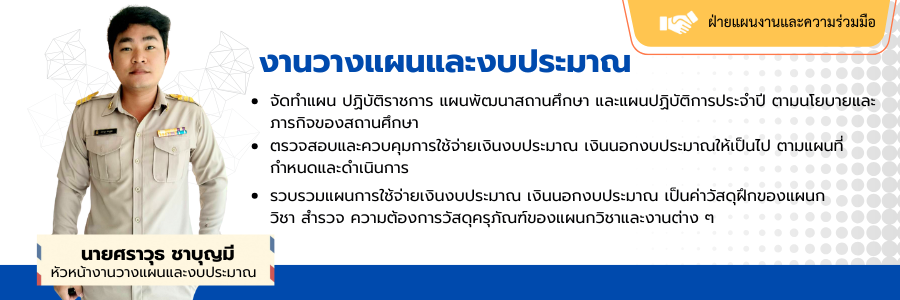 ฝ่ายแผนงานและความร่วมมือ → งานวางแผนและงบประมาณ