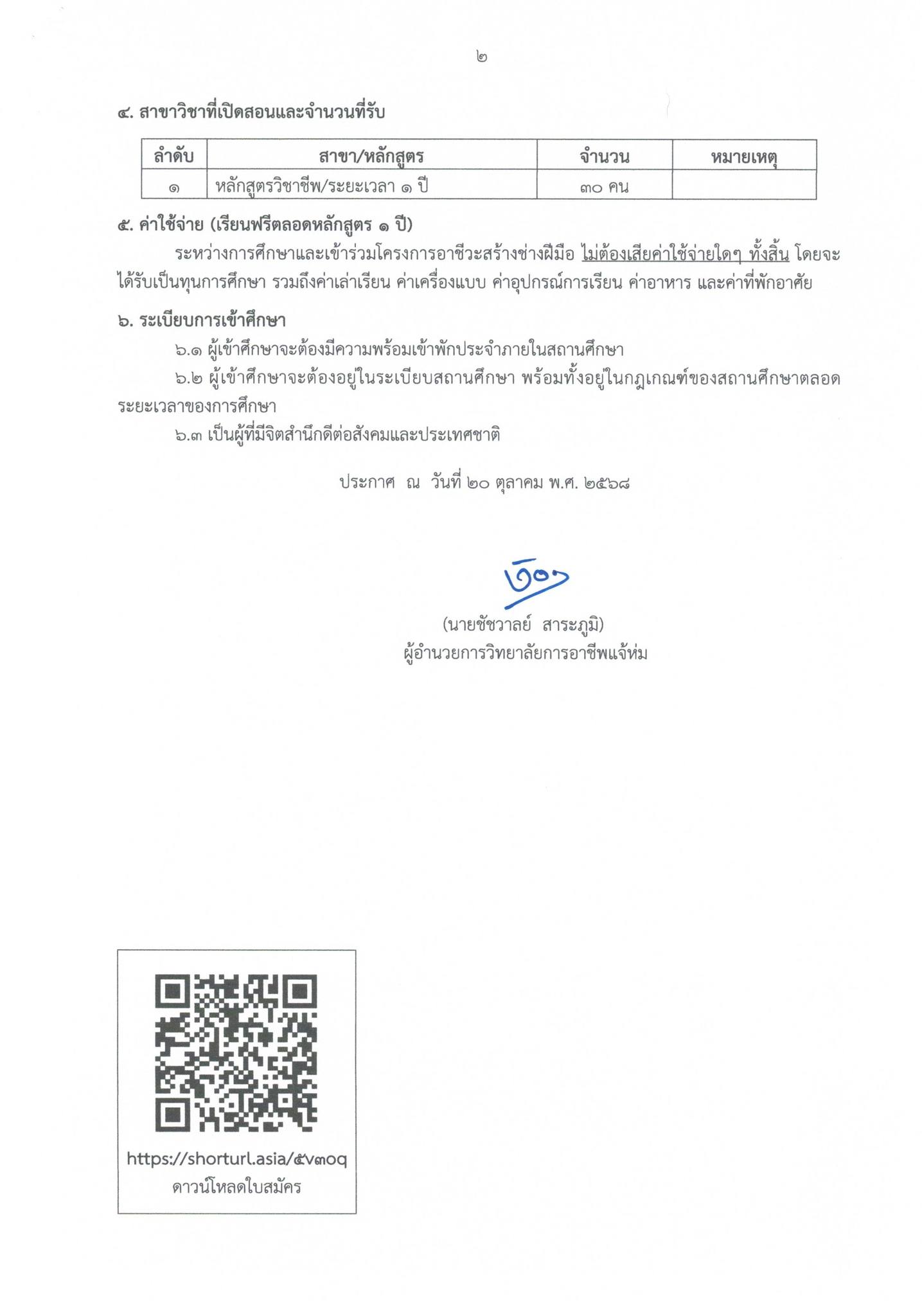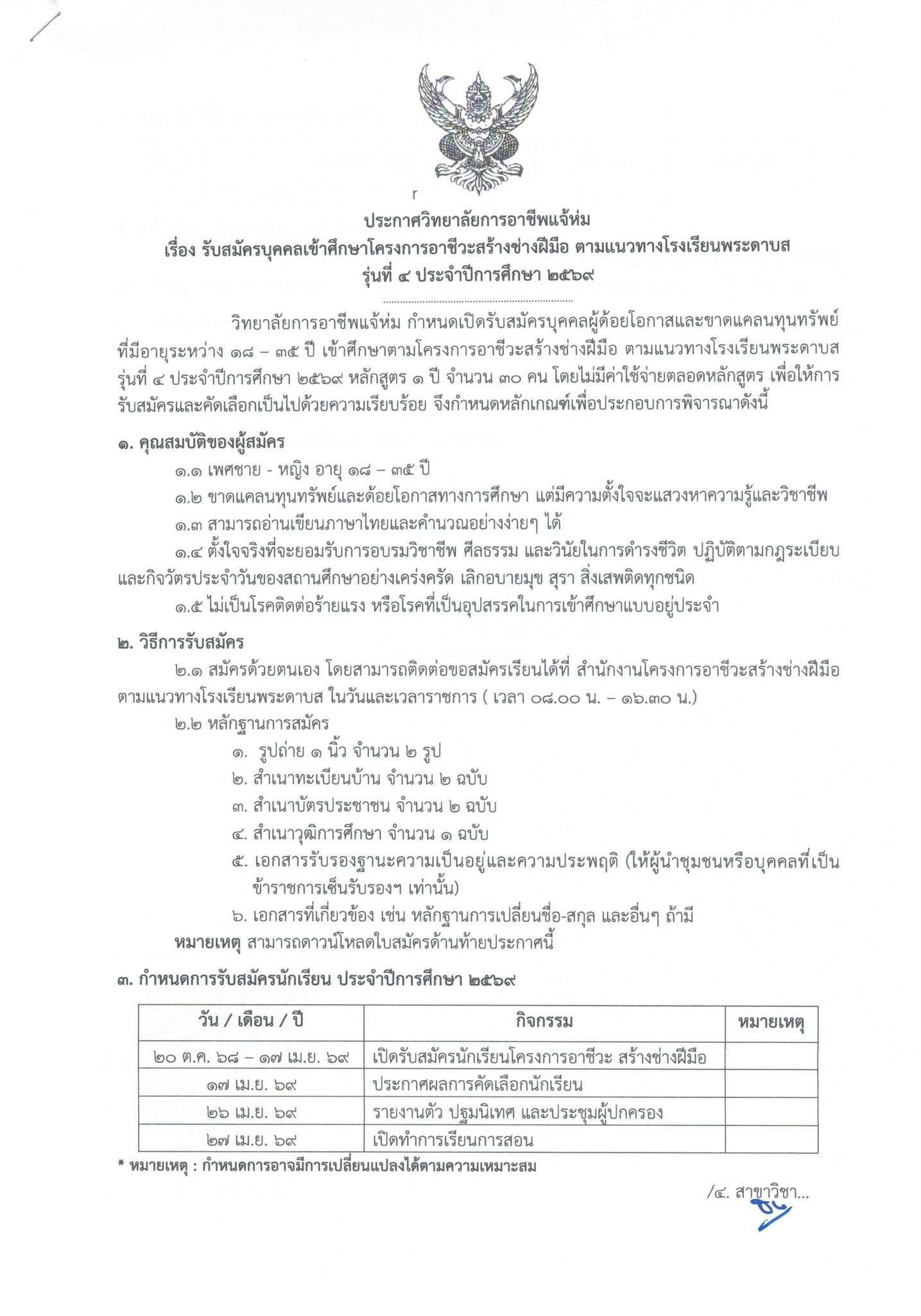 ประกาศวิทยาลัยการอาชีพแจ้ห่ม เรื่อง รับสมัครบุคคลเข้าศึกษาโครงการอาชีวะสร้างช่างฝีมือ ตามแนวทางโรงเรียนพระดาบส รุ่นที่ 4 ประจำปีการศึกษา 2569 22 ต.ค. 2568adminข่าวประชาสัมพันธ์ ประกาศวิทยาลัยการอาชีพแจ้ห่ม เรื่อง รับสมัครบุคคลเข้าศึกษาโครงการอาชีวะสร้างช่างฝีมือ ตามแนวทางโรงเรียนพระดาบส รุ่นที่ 4 ประจำปีการศึกษา 2569