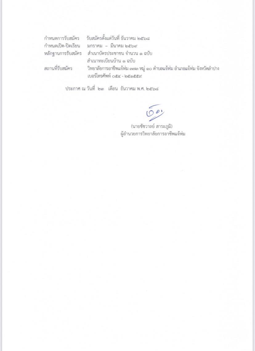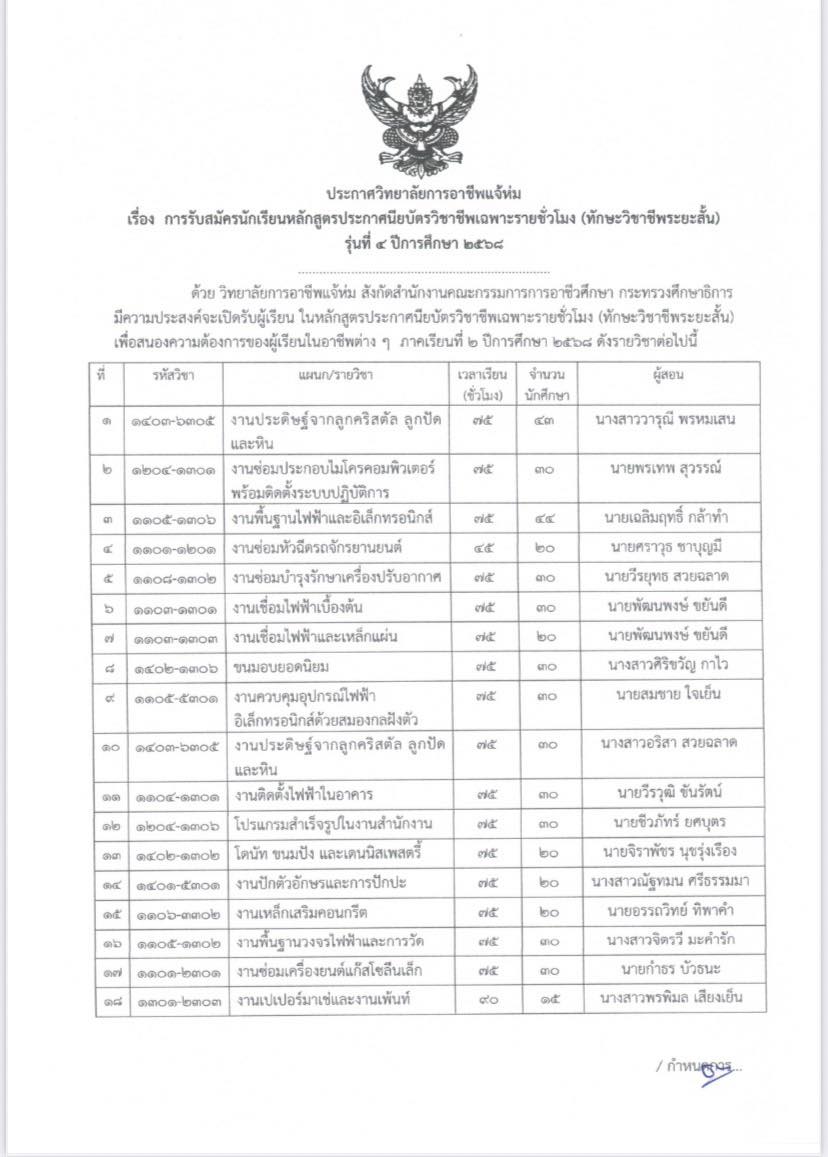 ประกาศรับสมัครนักเรียนประกาศนียบัตรวิชาชีพ เฉพาะรายชั่วโมง (ทักษะวิชาชีพระยะสั้นรุ่นที่ 4)