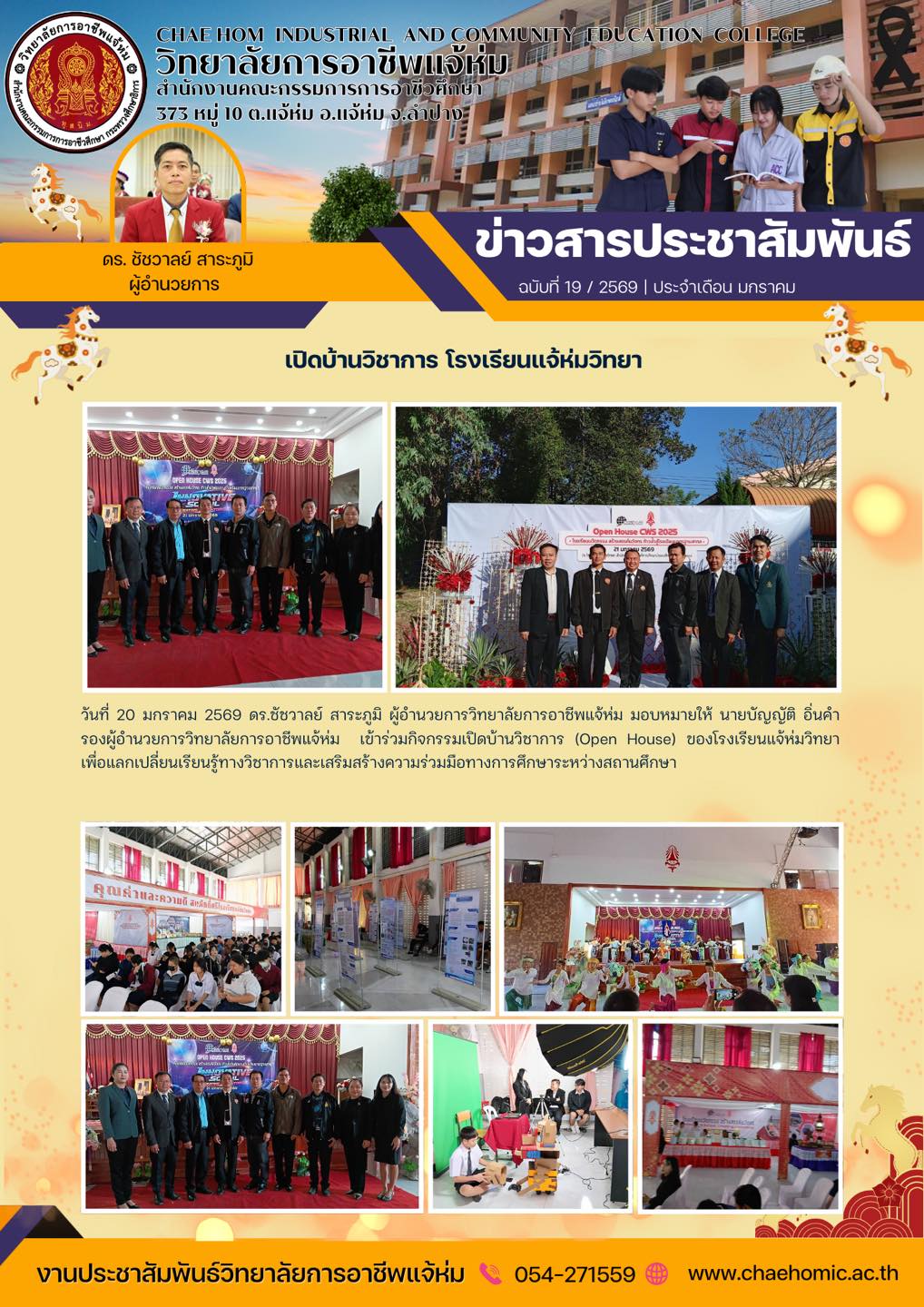 วันที่ 20 มกราคม 2569 ดร.ชัชวาลย์ สาระภูมิ ผู้อำนวยการวิทยาลัยการอาชีพแจ้ห่ม มอบหมายให้ นายบัญญัติ อิ่นคำ รองผู้อำนวยการวิทยาลัยการอาชีพแจ้ห่ม เข้าร่วมกิจกรรมเปิดบ้านวิชาการ (Open House) ของโรงเรียนแจ้ห่มวิทยา เพื่อแลกเปลี่ยนเรียนรู้ทางวิชาการและเสริมสร้างความร่วมมือทางการศึกษาระหว่างสถานศึกษา