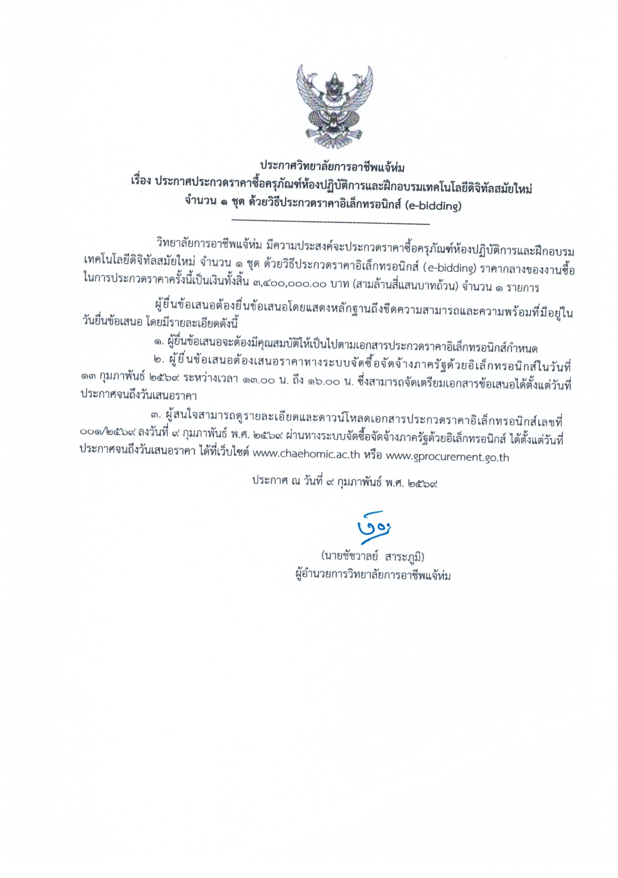 ประกาศประกวดราคาซื้อครุภัณฑ์ห้องปฏิบัติการและฝึกอบรมเทคโนโลยีดิจิทัลใหม่ จำนวน 1 ชุด ด้วยวิธีประกวดราคาอิเล็กทรอนิกส์ (e-bidding)