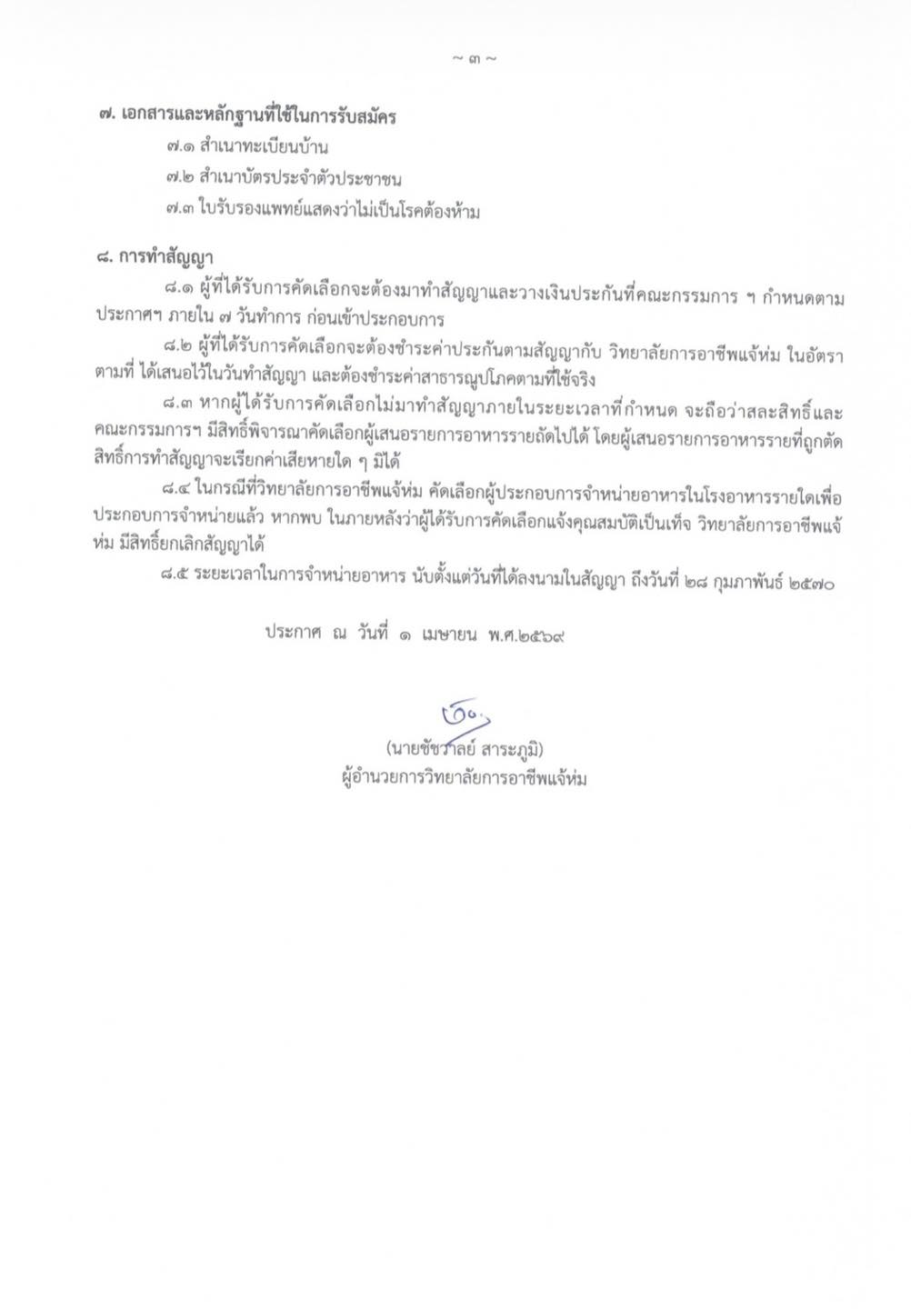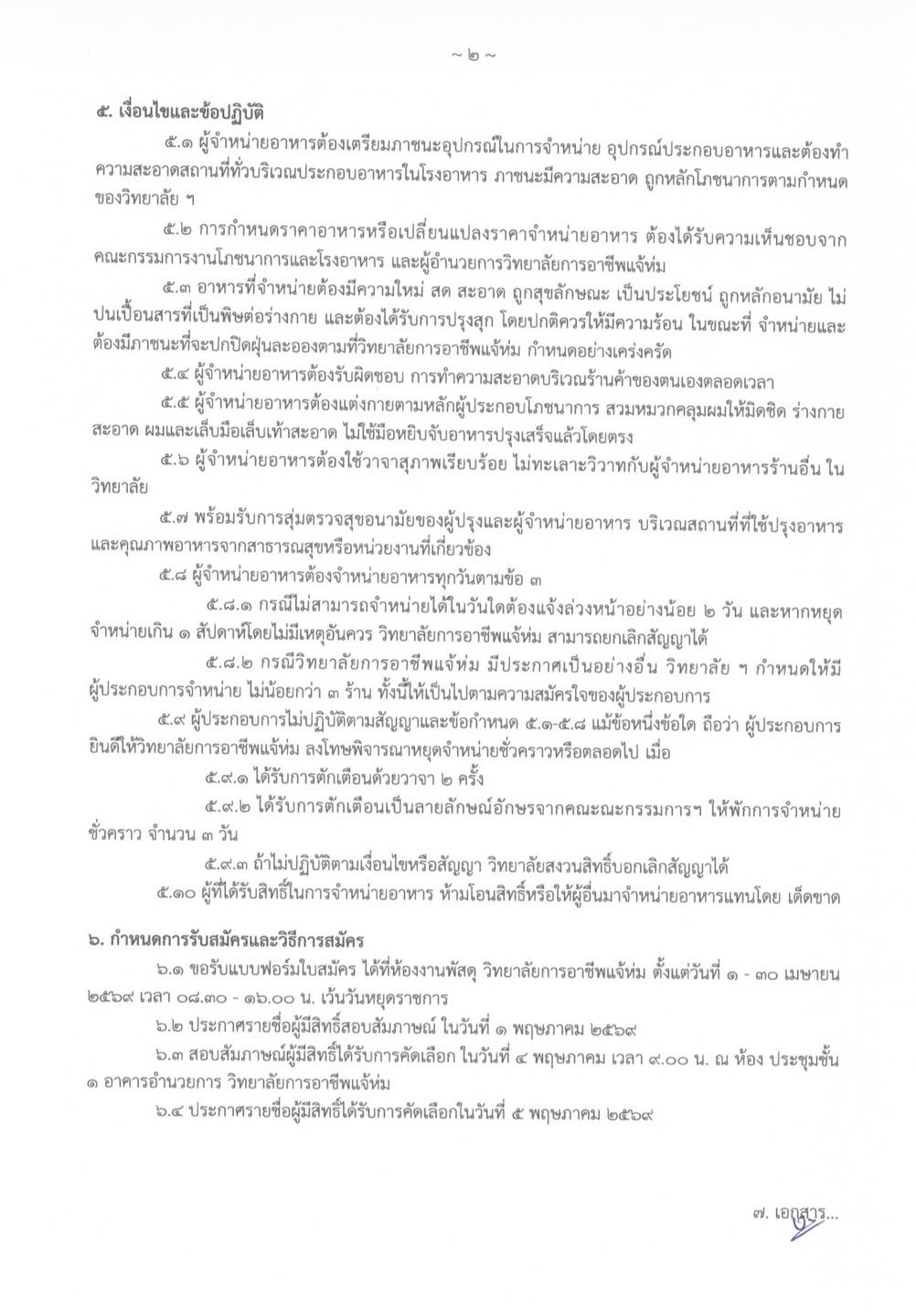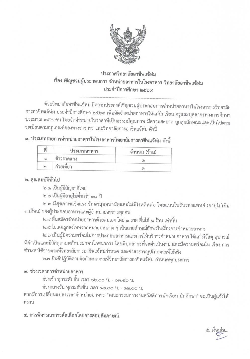 เชิญชวนผู้ประกอบการจำหน่ายอาหารในโรงอาหารวิทยาลัยการอาชีพแจ้ห่ม ประจำปีการศึกษา 2569 1 เม.ย. 25696 เม.ย. 2026adminข่าวประชาสัมพันธ์ ประกาศวิทยาลัยการอาชีพแจ้ห่ม เรื่อง เชิญชวนผู้ประกอบการจำหน่ายอาหารในโรงอาหารวิทยาลัยการอาชีพแจ้ห่ม ประจำปีการศึกษา 2569